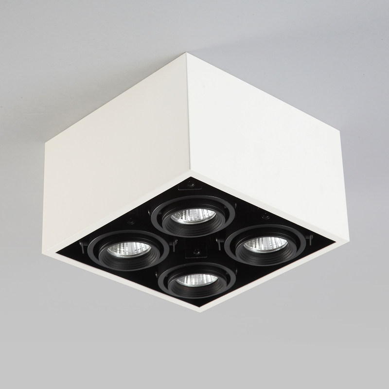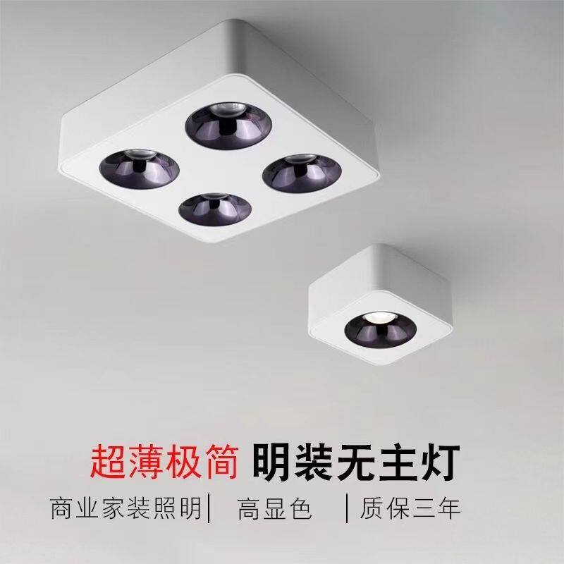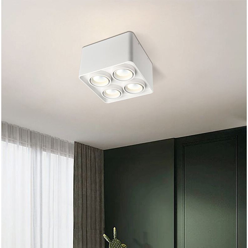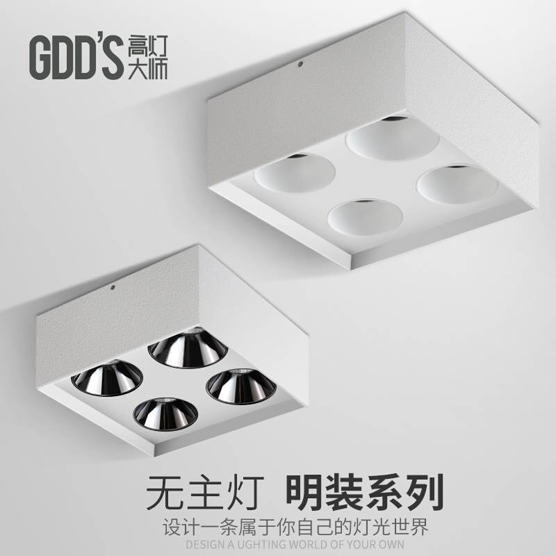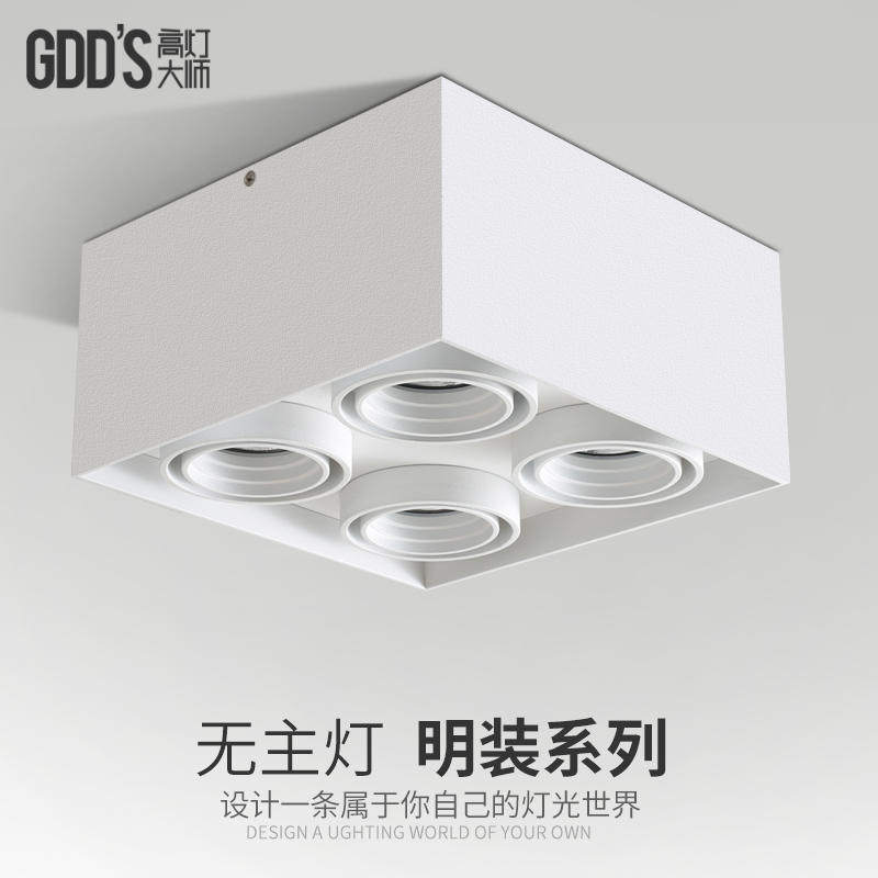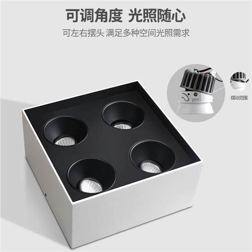 全铝正四头明装射灯吸顶免开孔方盒子4头豆胆灯cob深藏防眩摆头灯