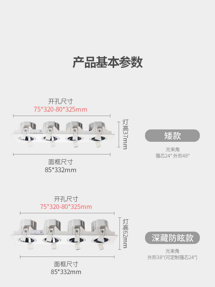 高灯大师射灯筒灯斗胆灯豆胆灯格栅灯开孔嵌入式暗装无主灯照明双