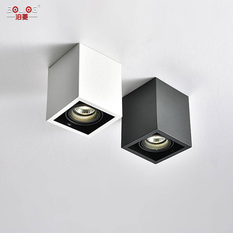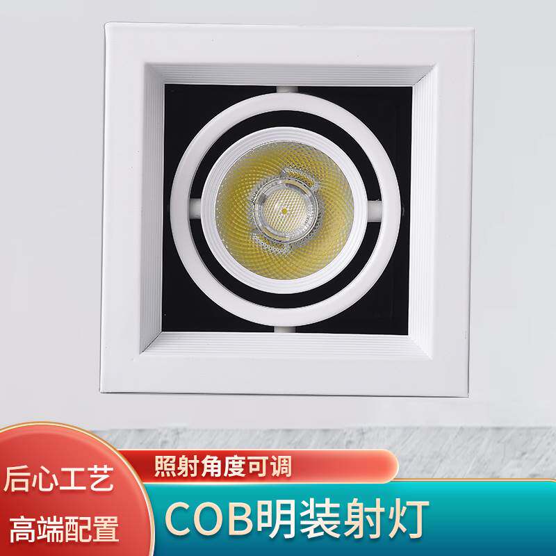 泊菱明装射灯led方形斗胆灯格栅灯豆胆灯单头双头cob射灯黑色盒子