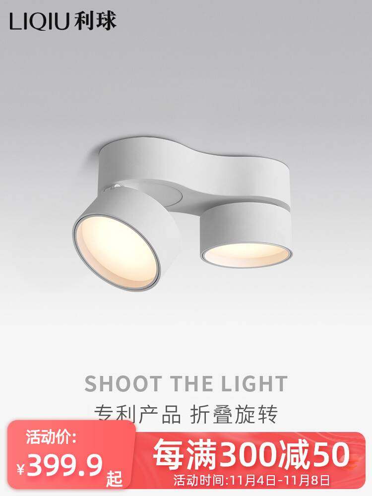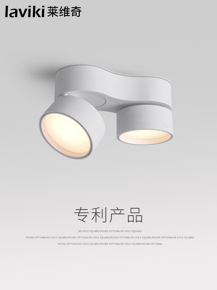 明装射灯可调角度led双头斗胆灯豆胆吸顶式免开孔筒灯无主灯照明