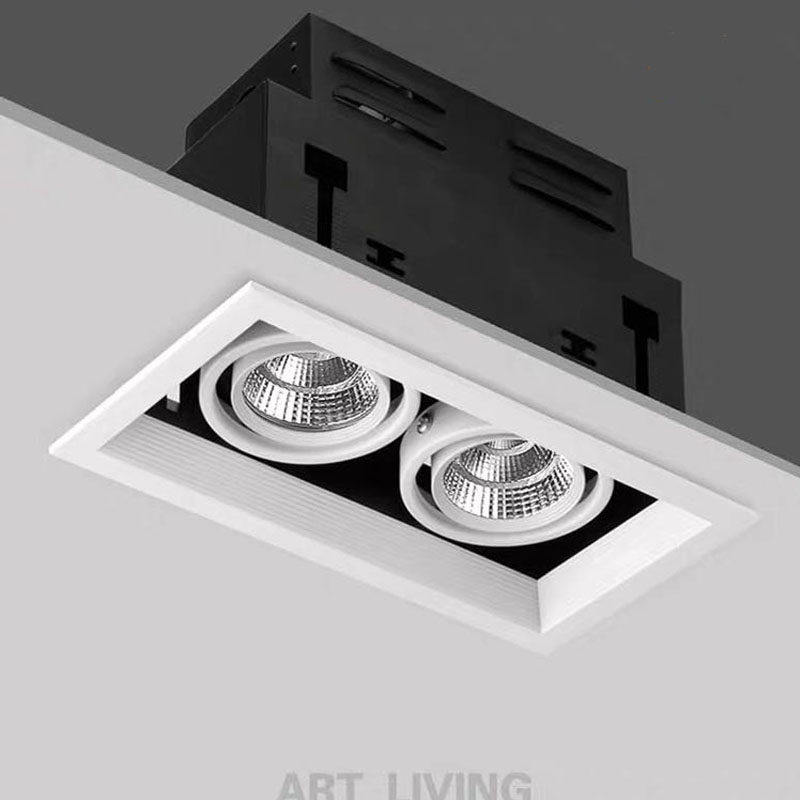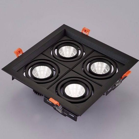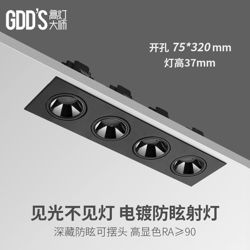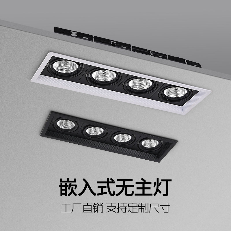 led四头射灯 嵌入式斗胆灯4头正方形格栅筒灯天花暗装cob豆胆灯
