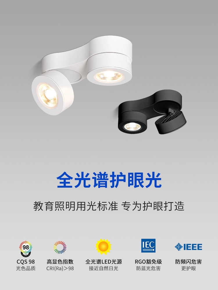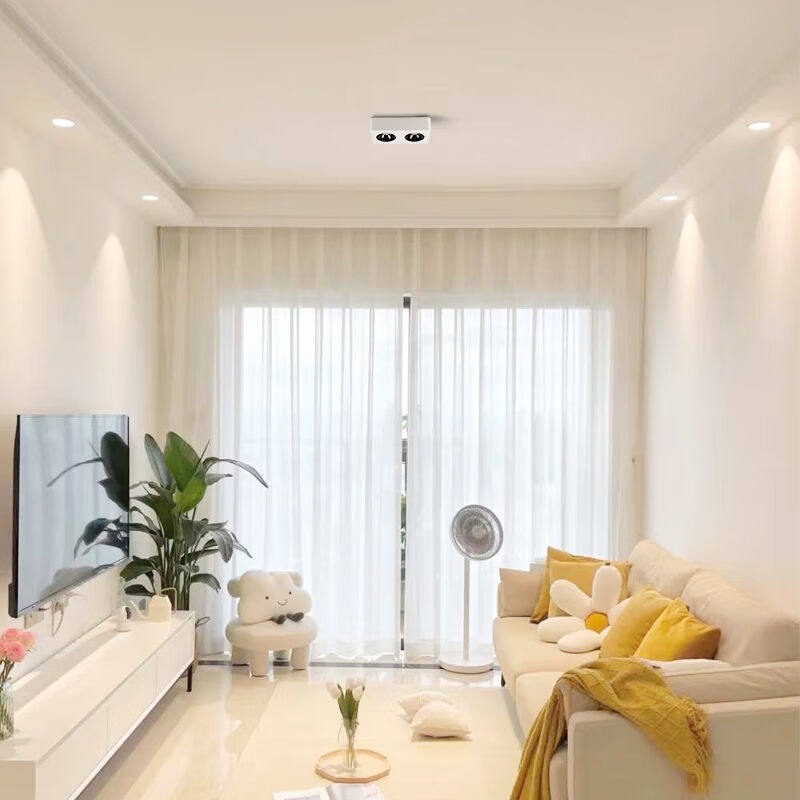 明装方形射灯全光谱双头筒灯吸顶式豆胆灯家用客厅卧室智能无主灯