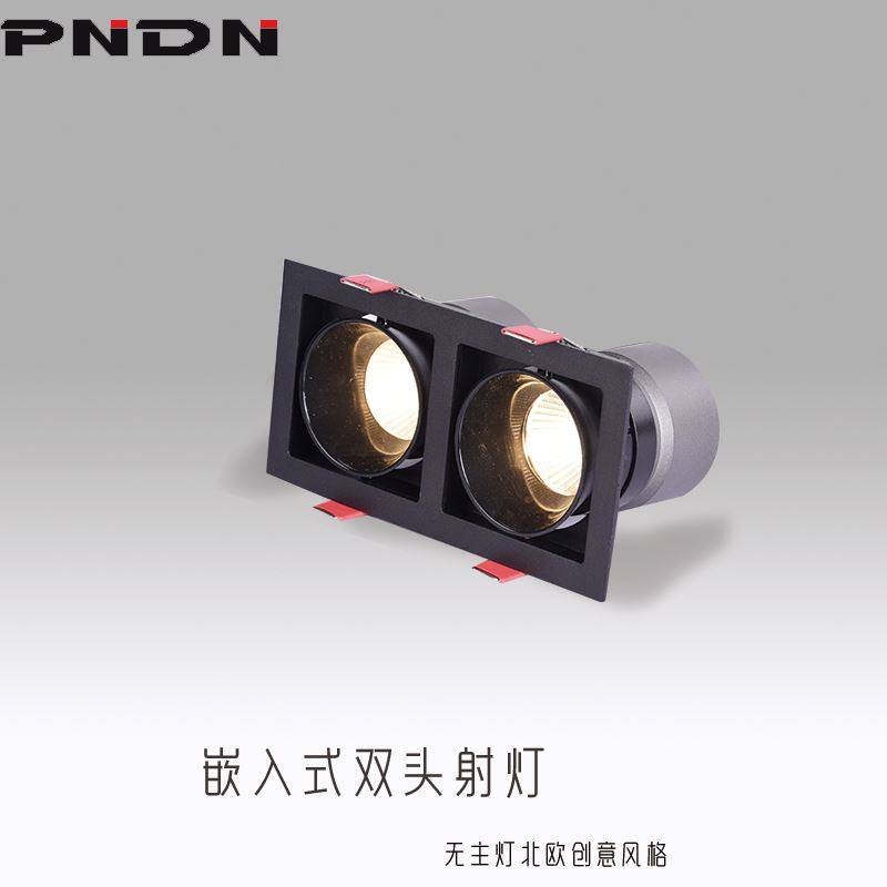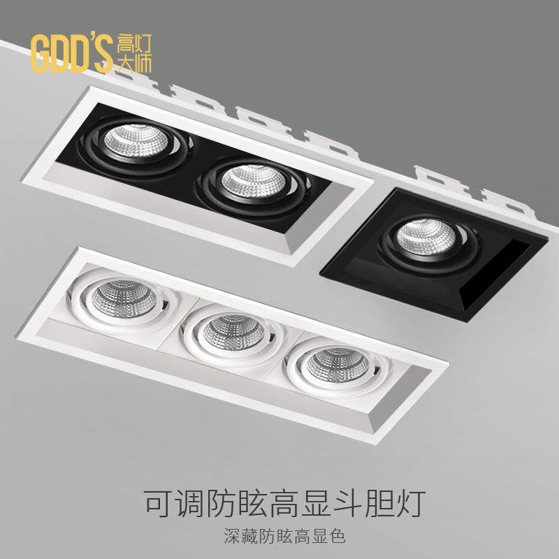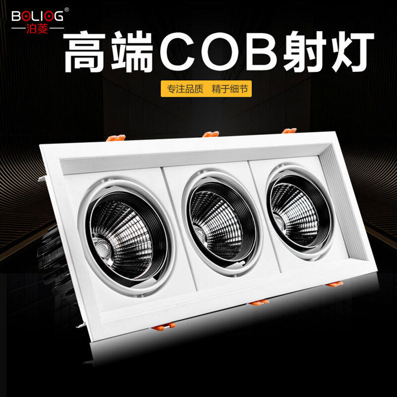 泊菱led斗胆灯双头射灯嵌入式单头三头cob豆胆格栅灯天花长方形筒