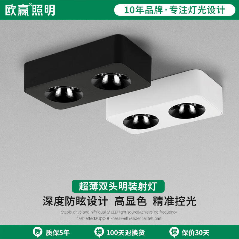 欧赢超薄明装双头斗胆灯led盒子灯客厅无主灯cob豆胆射灯筒灯白色