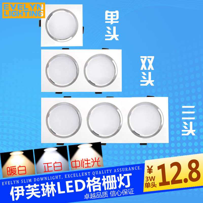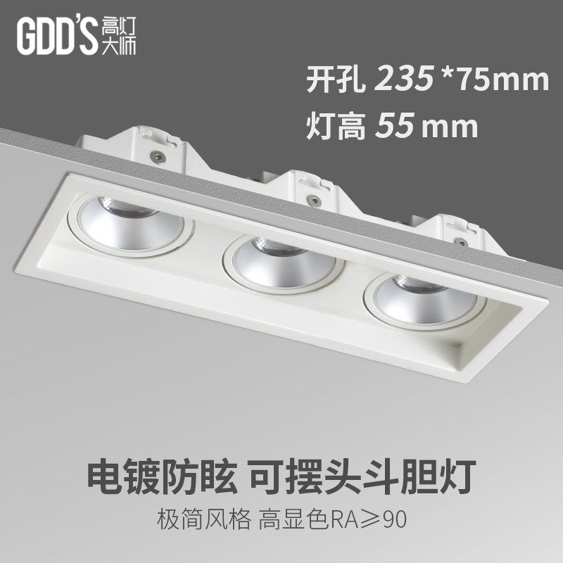 龙代斗胆灯客厅嵌入式豆胆格栅灯服装店LED天花射灯筒灯LX12W三头