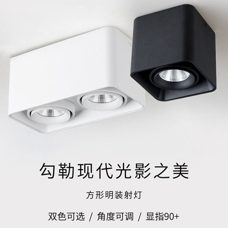 全铝明装双头斗胆灯豆胆射灯筒灯白色盒子灯LED后现代COB客厅智能