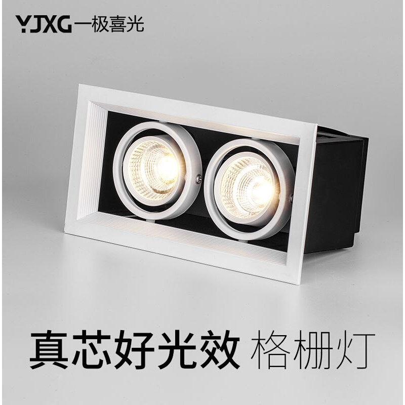 led斗胆射灯筒灯cob双头格栅12w10*20瓦30商场店铺三头长方形豆胆