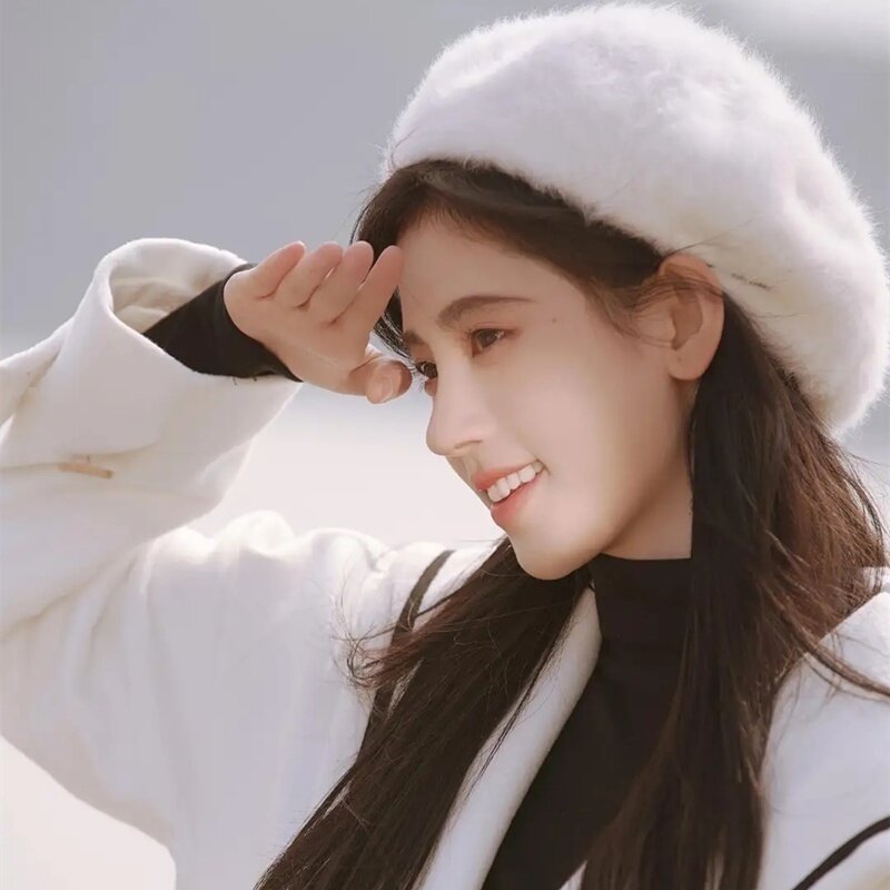 千禧甜妹~精致手工兔毛水钻毛绒贝雷帽女冬时尚画家帽反戴前进帽