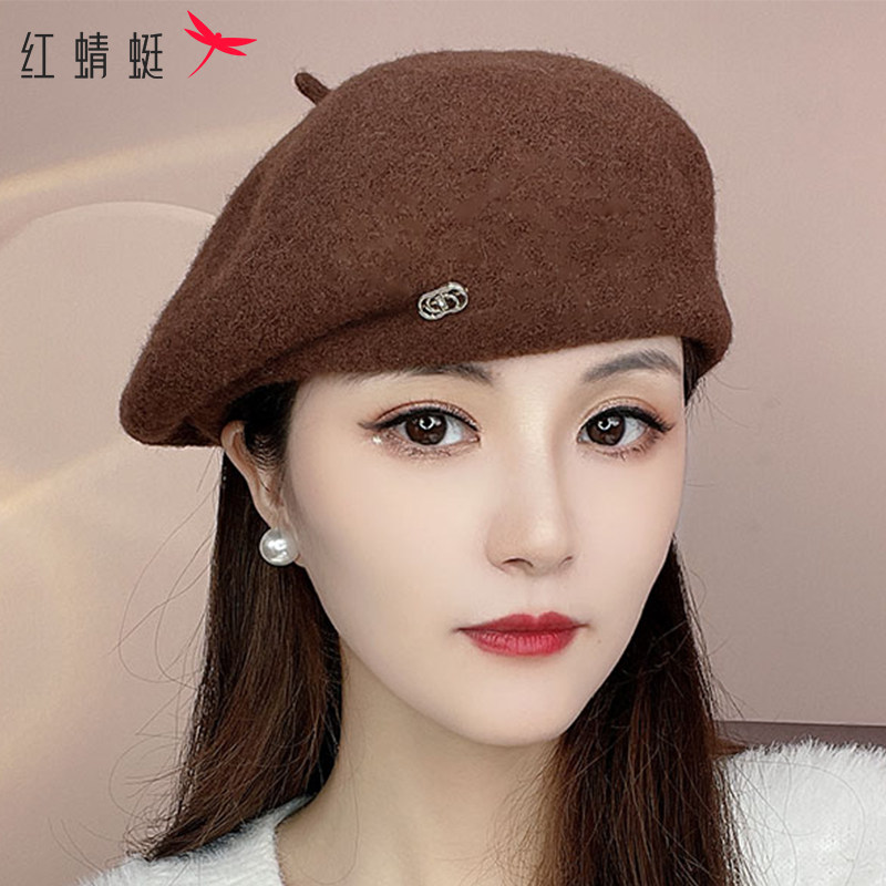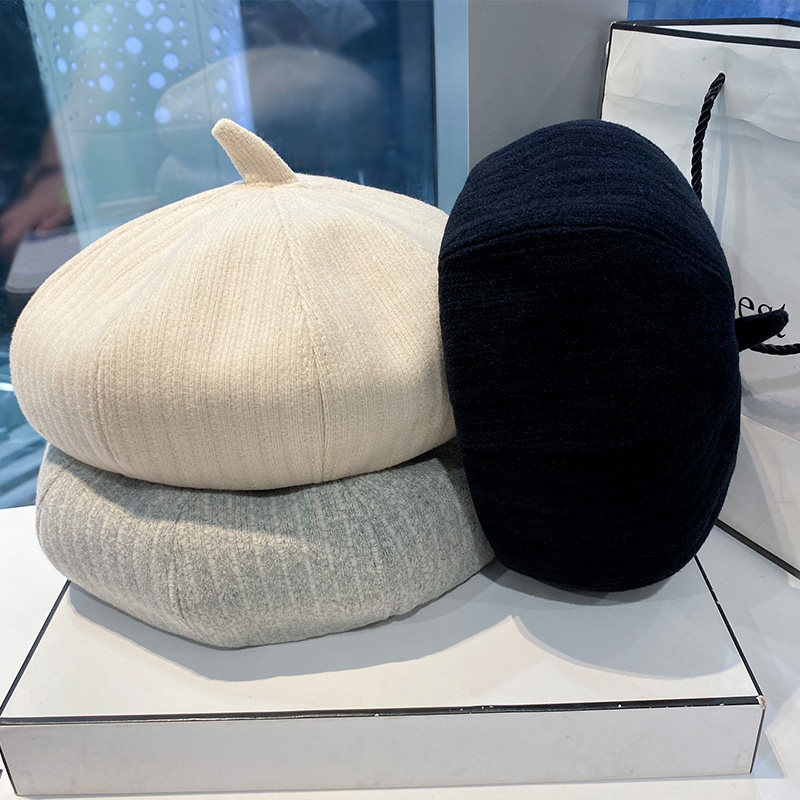 春秋季日系羊毛呢帽女网红英伦复古时尚贝雷帽加厚保暖针织画家帽