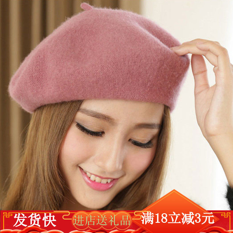 针织贝雷帽日系百搭马海毛帽子女秋冬季保暖显脸小毛线帽画家帽潮