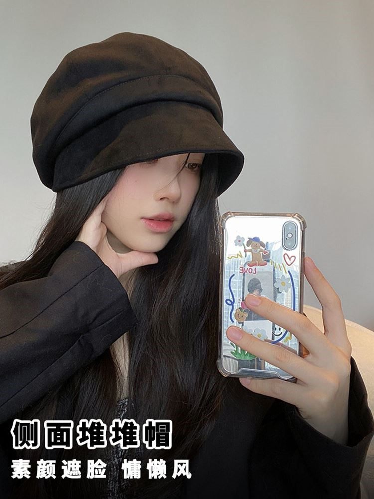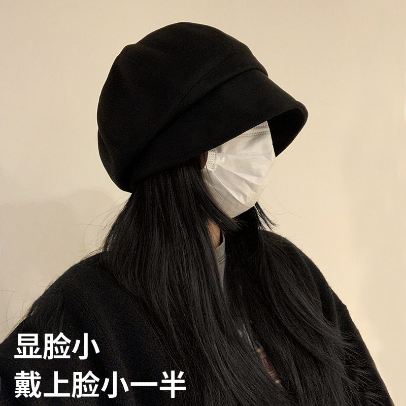 堆堆帽子女春秋日系素颜遮脸百搭绒渔夫帽显脸小大头围八角贝雷帽