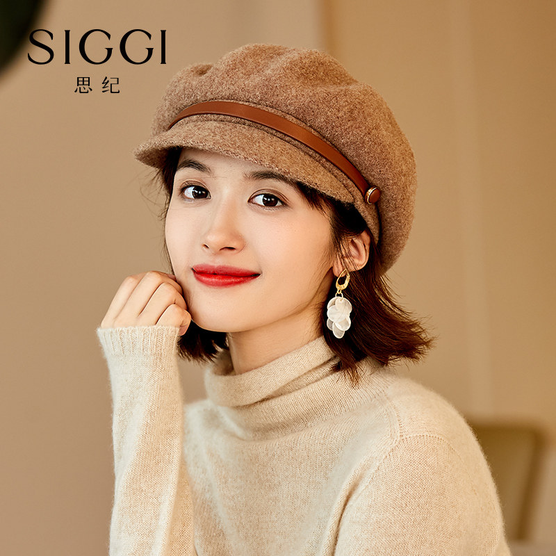 Siggi 帽子女秋冬季款贝雷帽英伦复古风时尚百搭韩系大头围画家帽