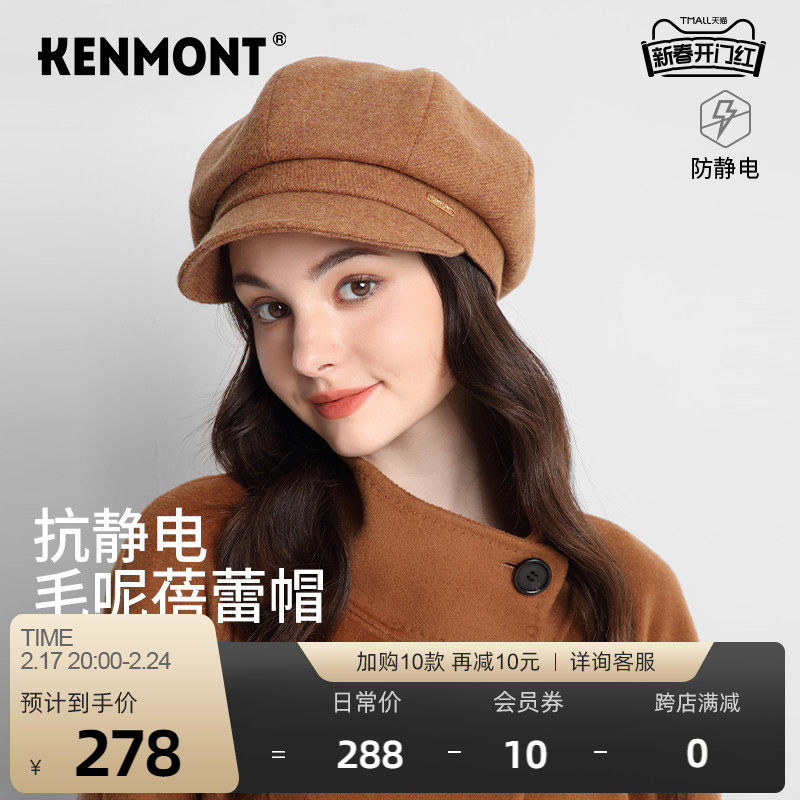 卡蒙秋冬英伦鸭舌贝雷帽女护耳保暖针织毛线帽时尚羊毛后托堆堆帽