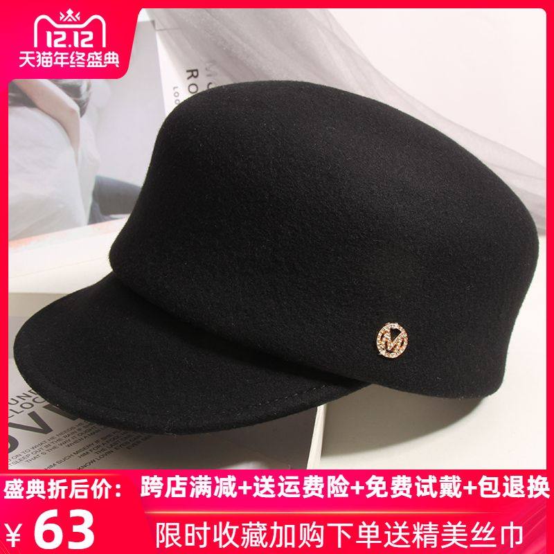 羊毛贝雷帽女秋冬黑色复古鸭舌帽时尚优雅前进帽百搭英伦毛呢礼帽