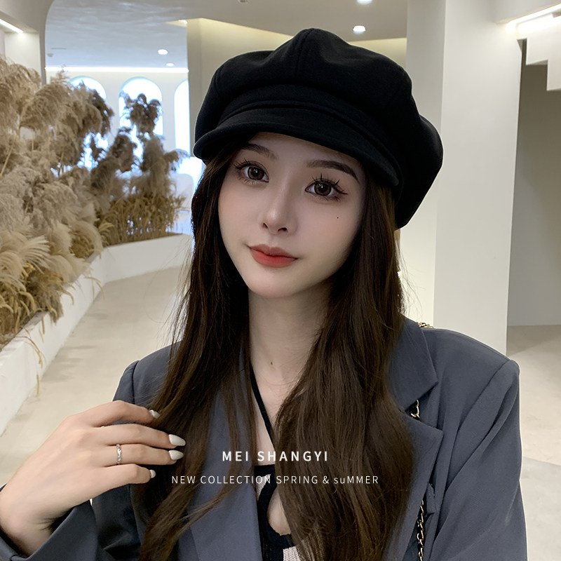 帽子女复古时尚黑色贝雷帽春秋潮流纯色画家帽日系百搭南瓜帽女冬