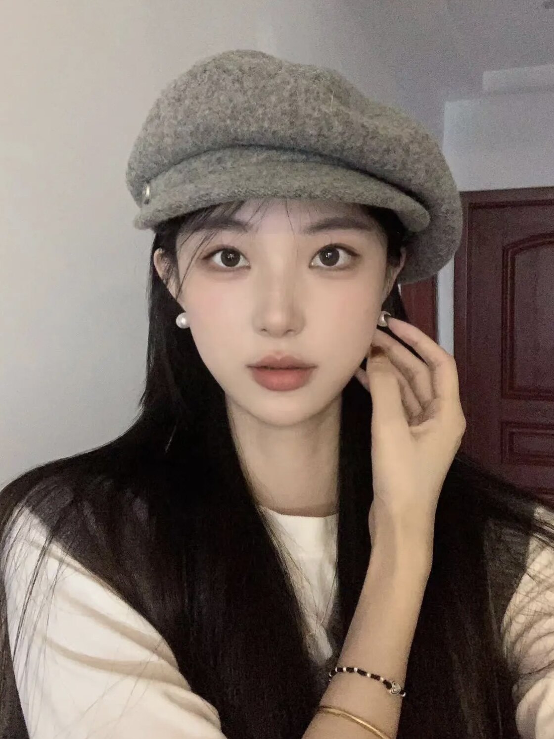 八角帽女秋冬加厚保暖贝雷帽时尚护耳韩版文艺显脸小百搭2023新款