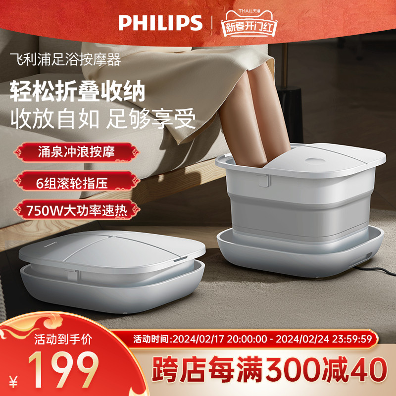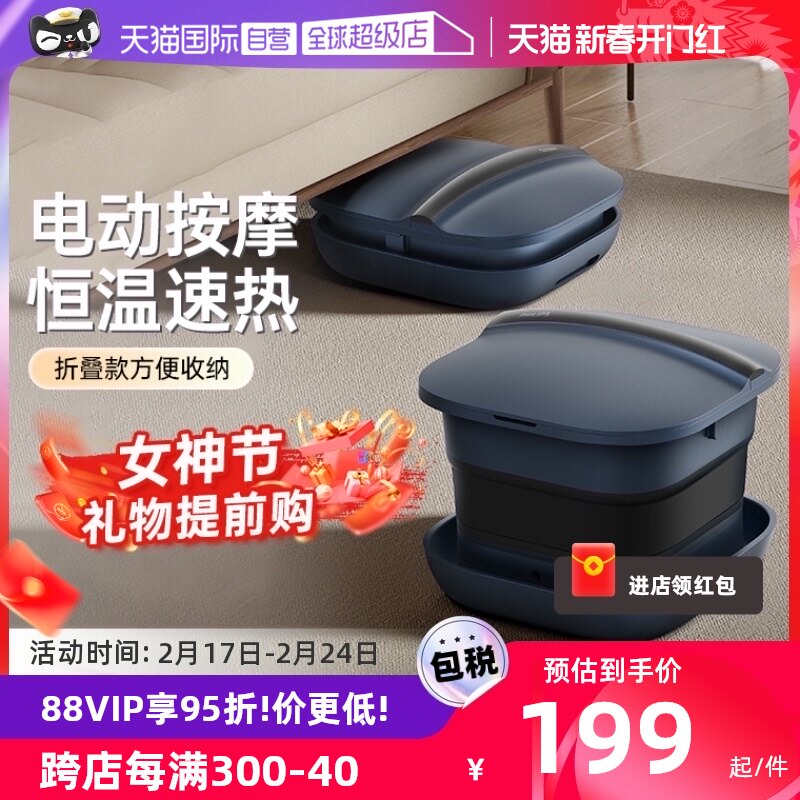 飞利浦折叠泡脚桶恒温加热洗脚盆电动按摩加热足浴盆全自动泡脚盆