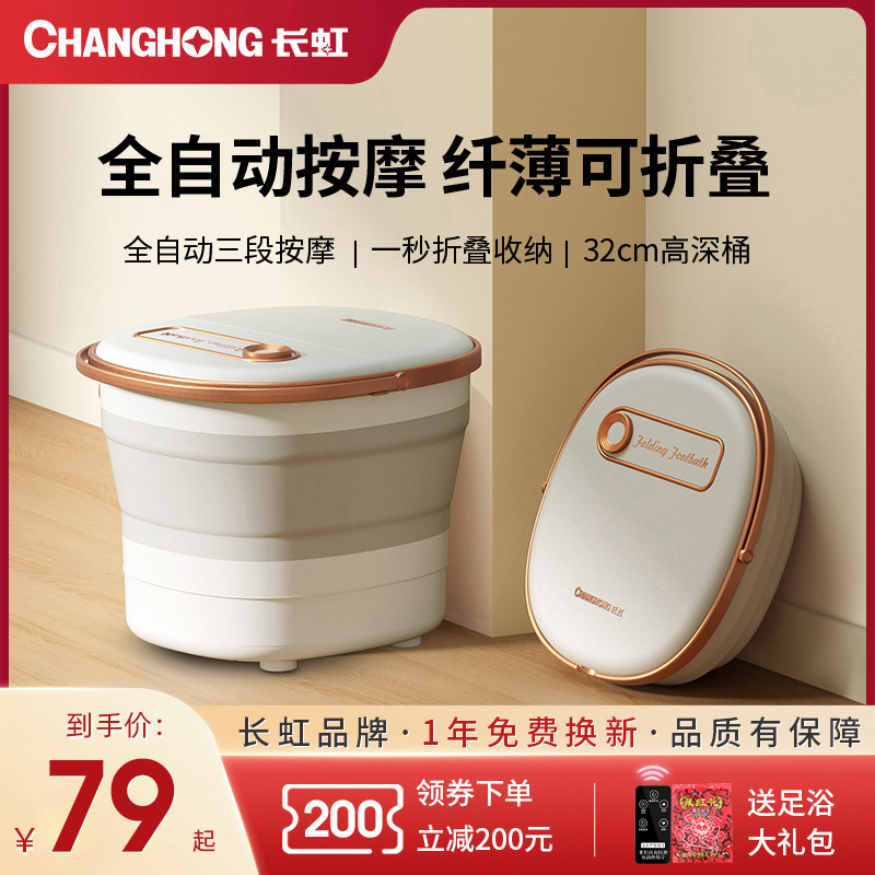 长虹可折叠泡脚桶家用全自动加热恒温足浴盆电动按摩洗脚器足疗机
