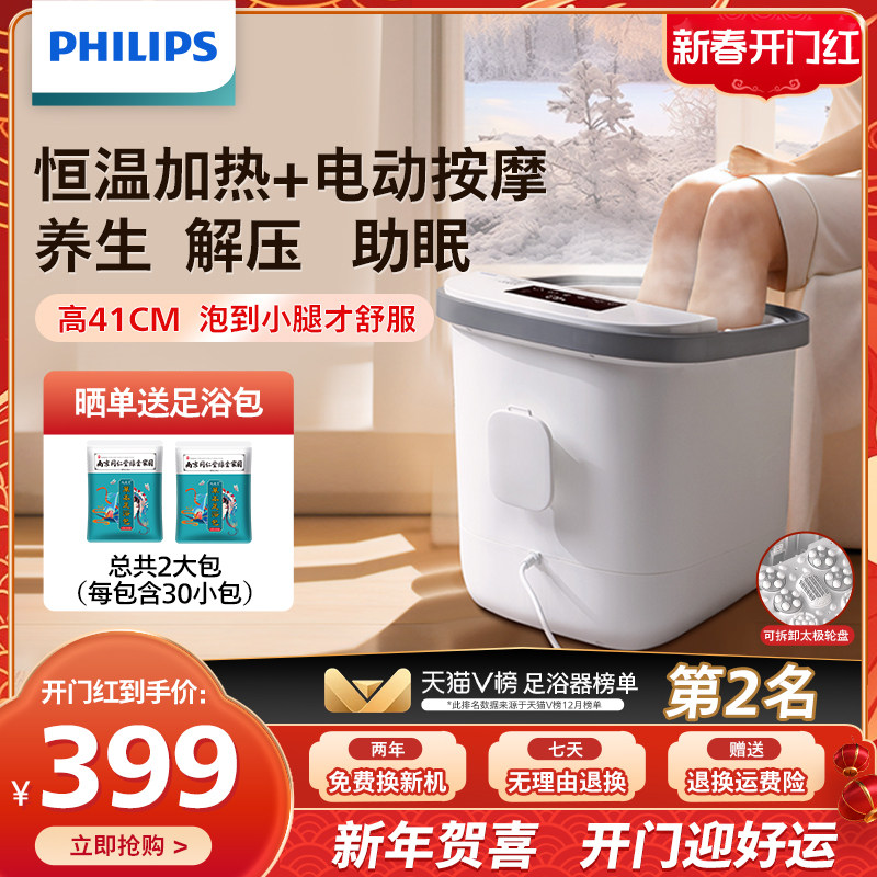 飞利浦小白桶泡脚桶加热恒温洗脚盆电动按摩加热足浴全自动泡脚盆