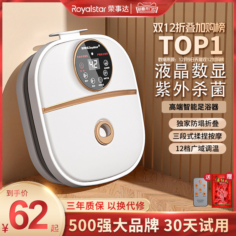 荣事达可折叠泡脚桶足浴盆全自动加热恒温电动按摩洗脚器足疗家用