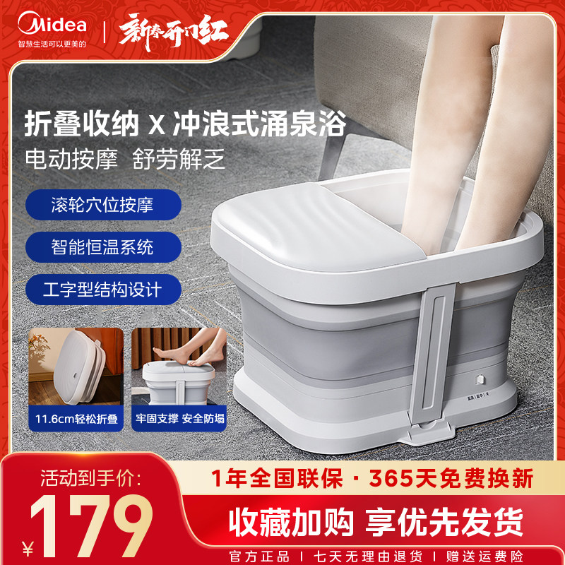 美的折叠泡脚桶恒温加热家用全自动养生按摩足浴盆电动足疗洗脚盆