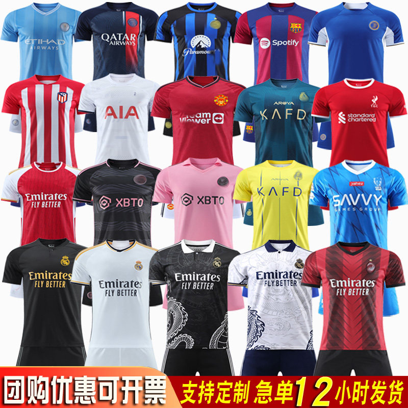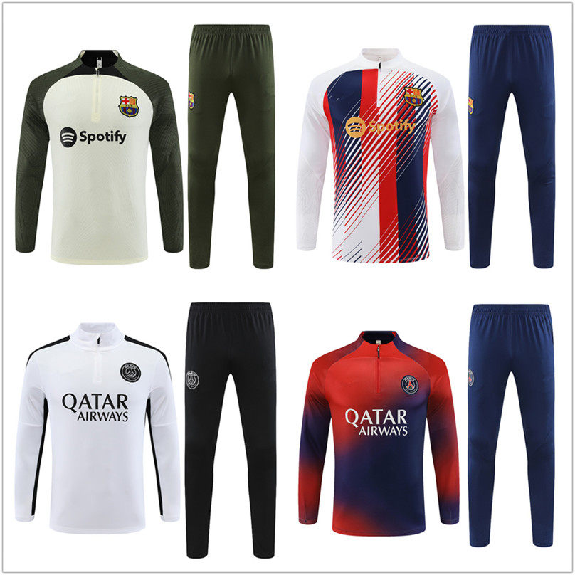 秋冬足球训练服巴黎皇马巴萨成人儿童比赛定制长袖足球服梅西球衣