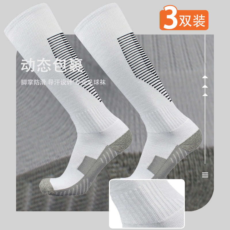 3双 足球袜男士长筒加厚毛巾底防滑高筒专业实战儿童成人运动袜子
