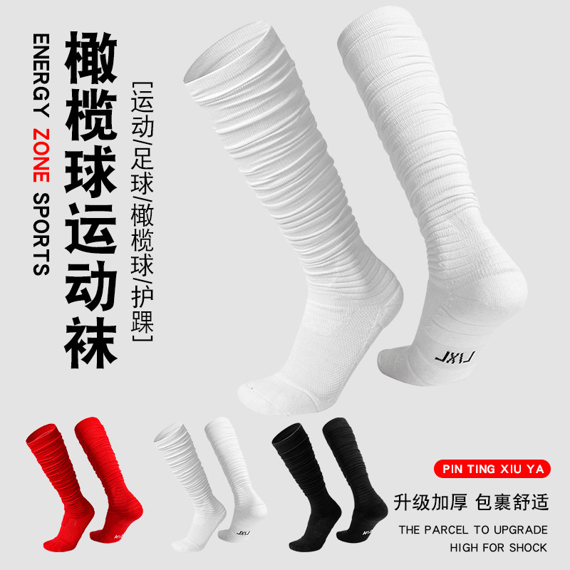 运动训练袜子3双 跑步防滑加厚毛巾底耐磨长筒袜橄榄球足球高帮袜