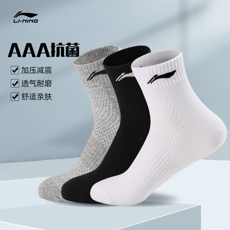 李宁袜子男三双装吸汗透气短袜船袜女棉袜跑步篮球足球运动袜正品
