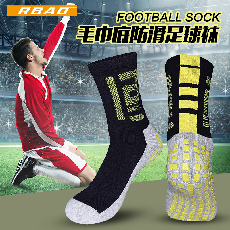 rbao中筒足球袜男袜加厚毛巾底滴胶防打滑吸汗耐磨运动袜训练袜