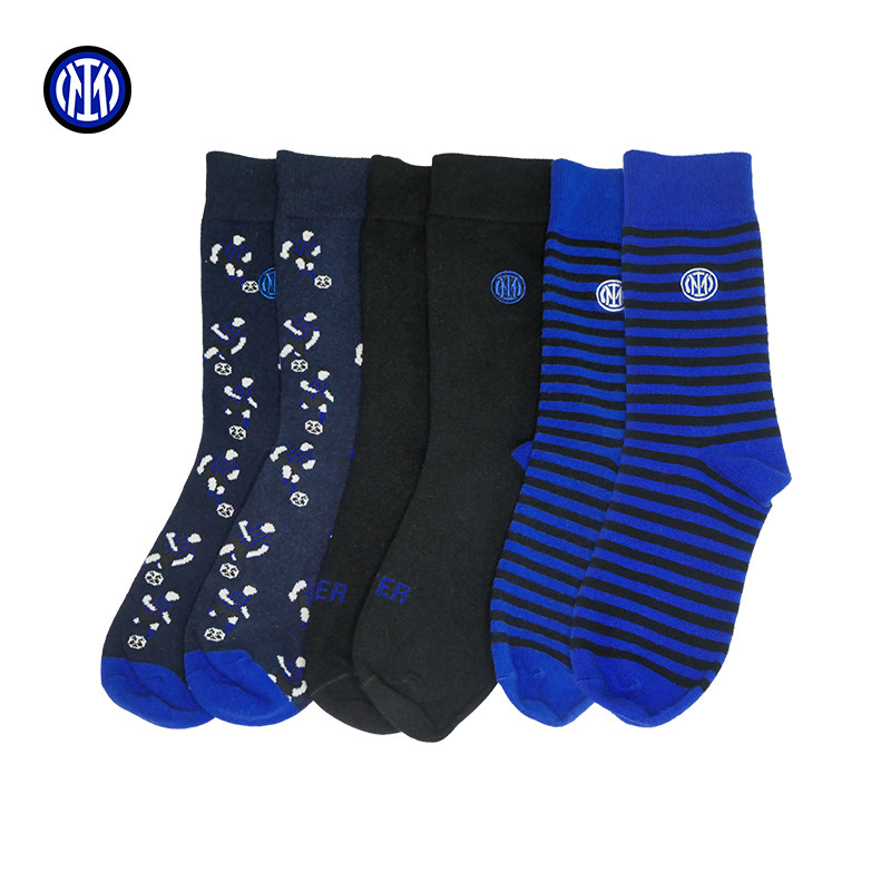 国际米兰男士纯棉中筒袜休闲商务长筒袜子男精梳棉国米袜子2023新