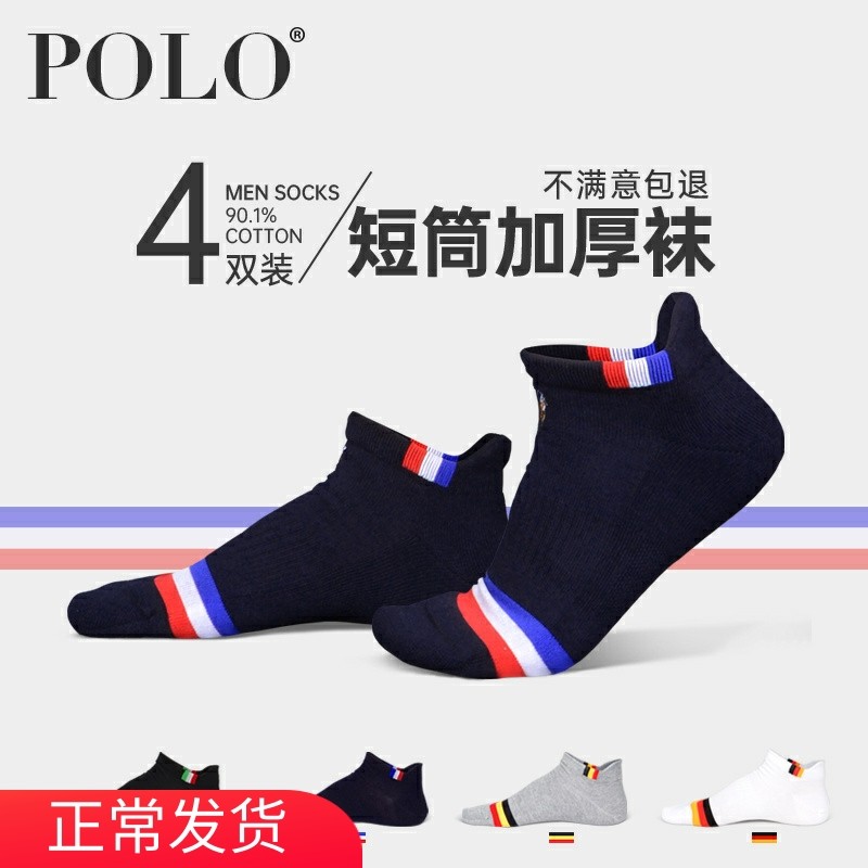 Polo袜子男短袜男毛巾袜毛圈运动跑步纯色足球棉袜男袜子四季男袜