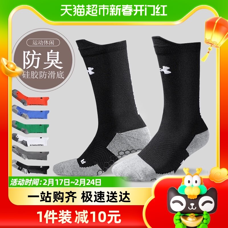 安德玛足球女跑步男袜子UA篮球袜男款秋冬儿童运动精英毛巾底美式