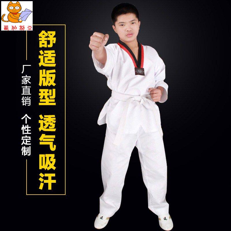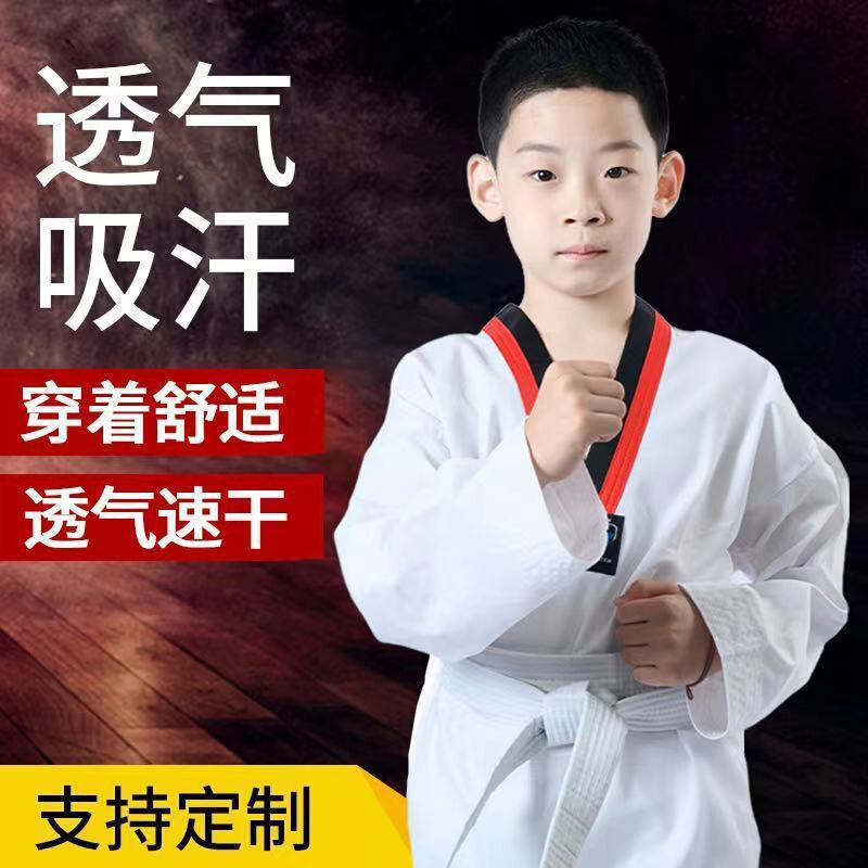 纯棉跆拳道服装成人儿童初学长袖短袖薄款夏季男女大学生定制道服