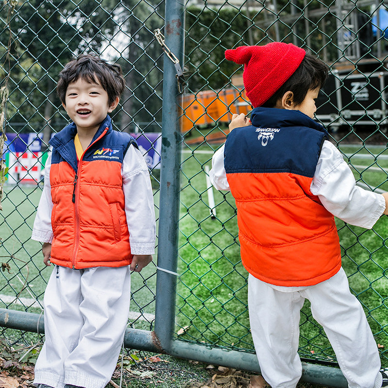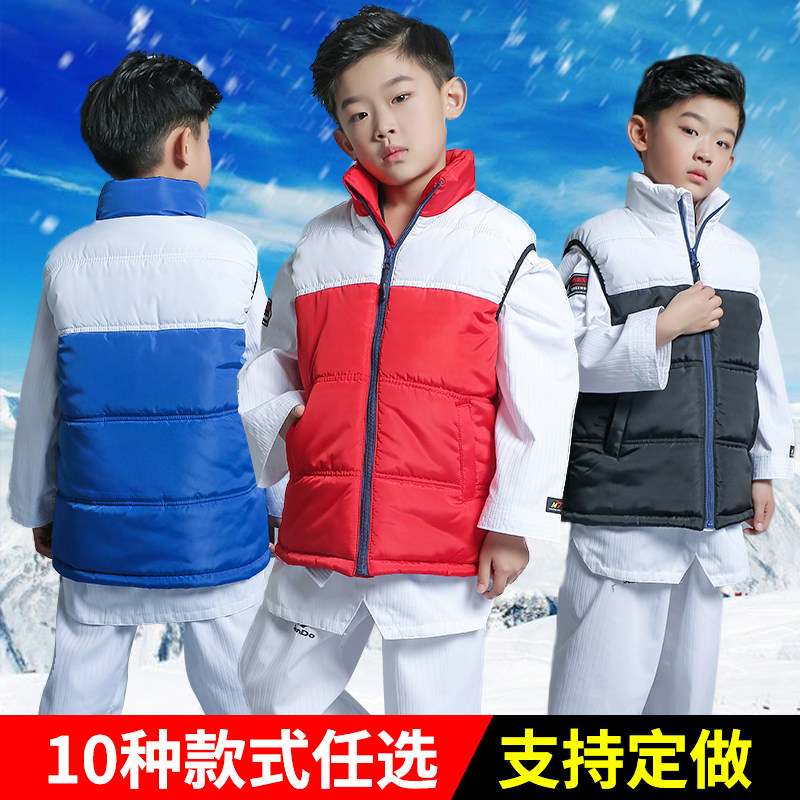 包邮跆拳道马甲秋冬儿童羽绒棉保暖背心男女跆拳道服训练棉服马甲