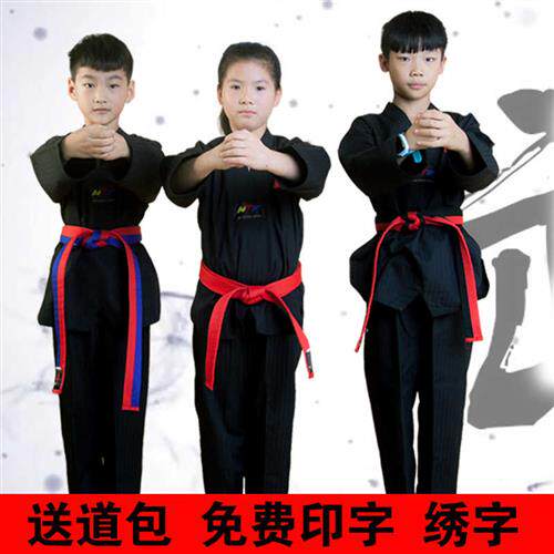 闰梦跆拳道服儿童男女黑色教练训练服定制服装品势道服跆拳道衣服