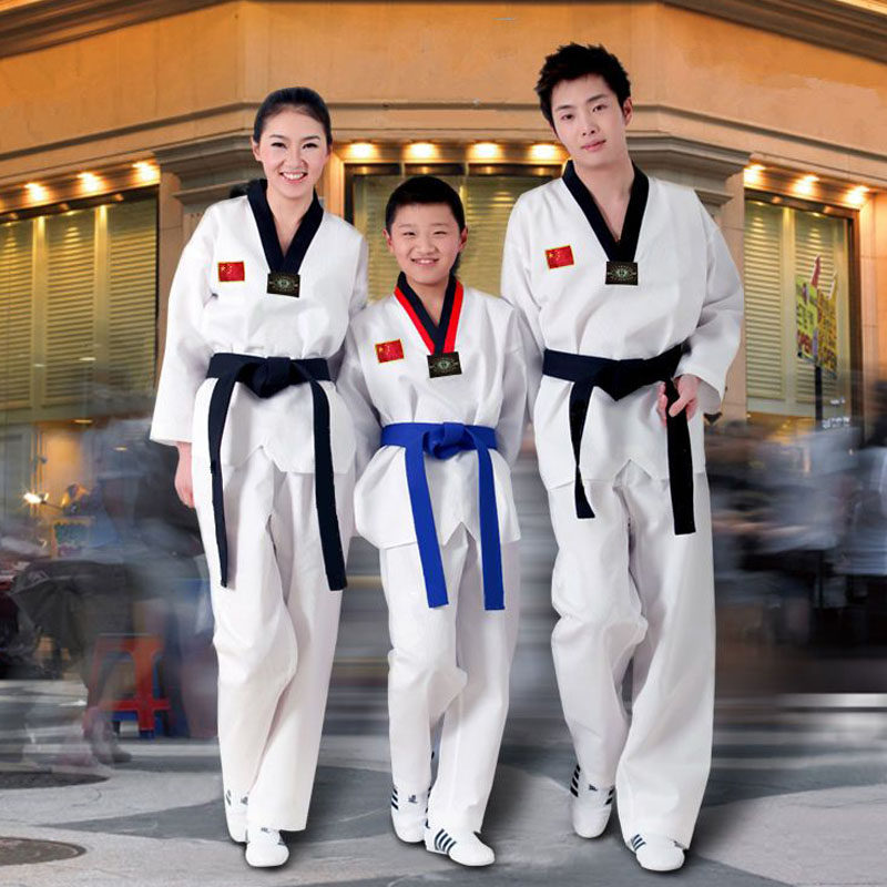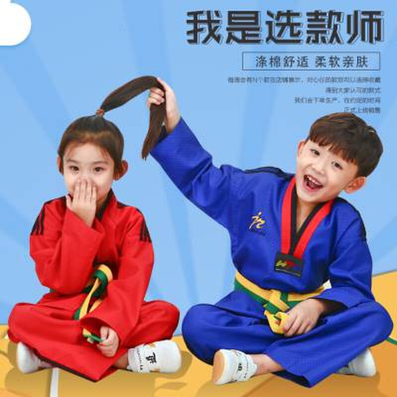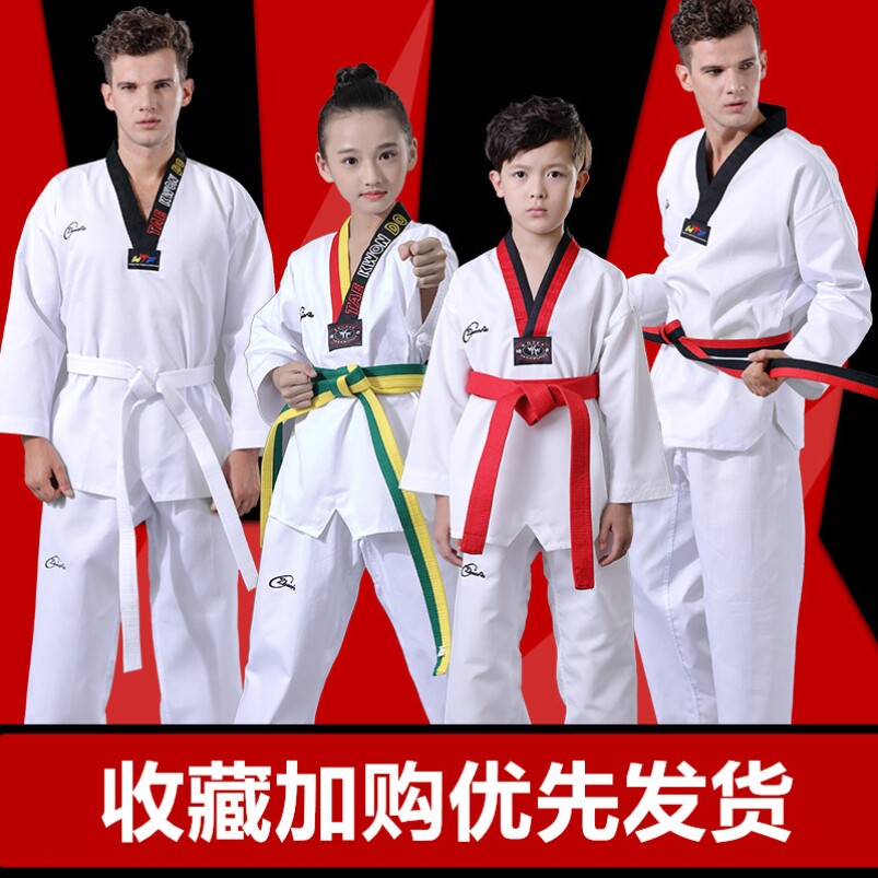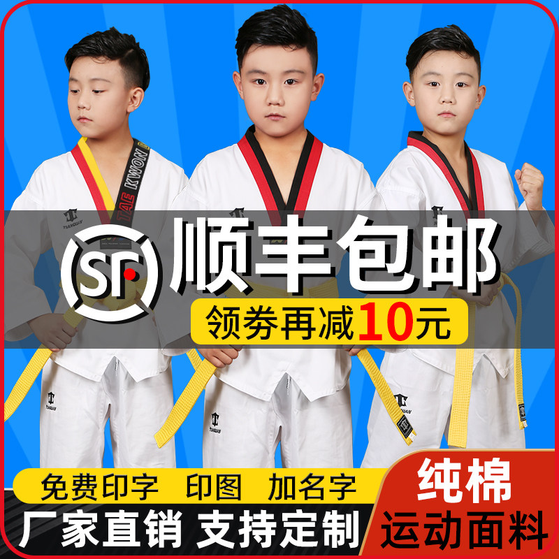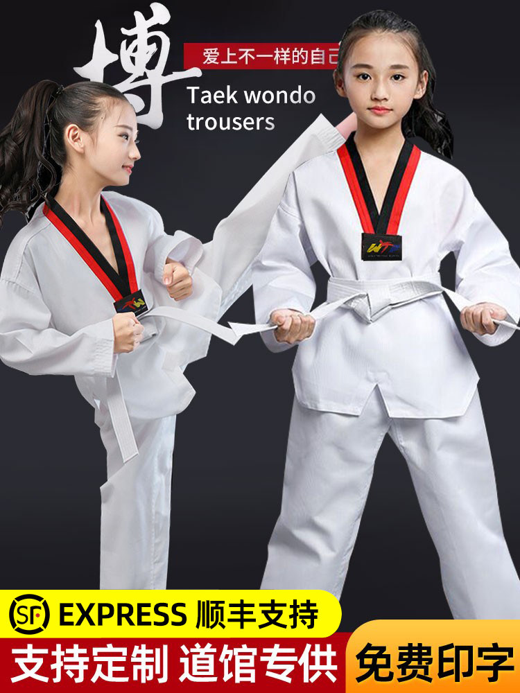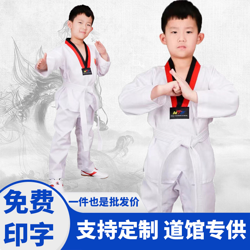 儿童跆拳道服装成人男女通用棉泰拳演出训练服春秋初学者定制套装