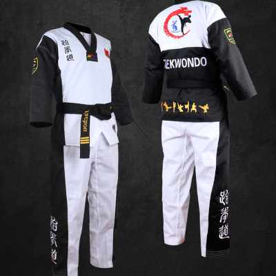 闰梦跆拳道服品势服儿童成年男女黑色道服装教练训练竞技学生定制