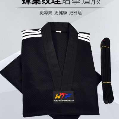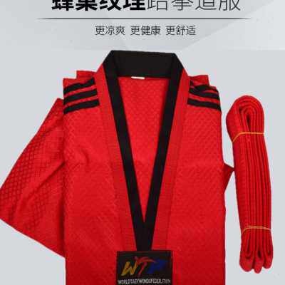 黑色儿童成人蜂巢纹红色大网格跆拳道服道馆专用白色教练道服长袖