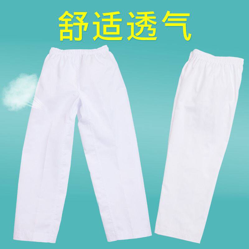 儿童跆拳道服装空手道裤子纯棉白色道裤台拳道大学生成人男女训练