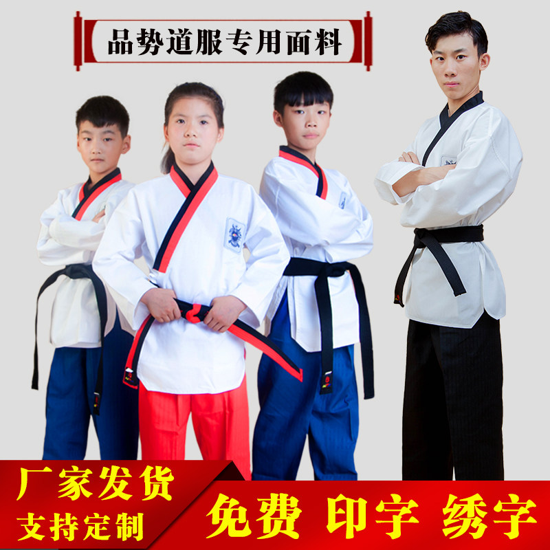儿童跆拳道服成人定制道服红蓝色黑色教练服男女服装训练衣服全套