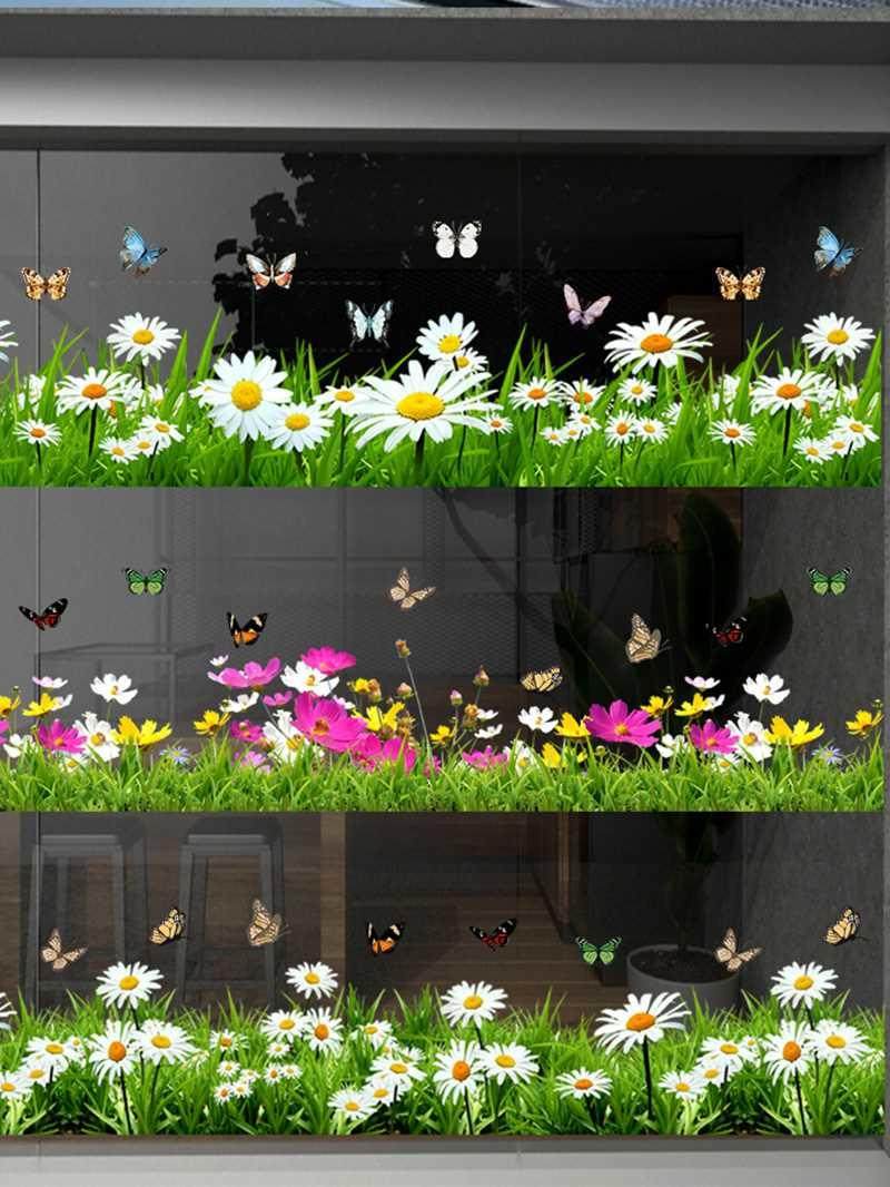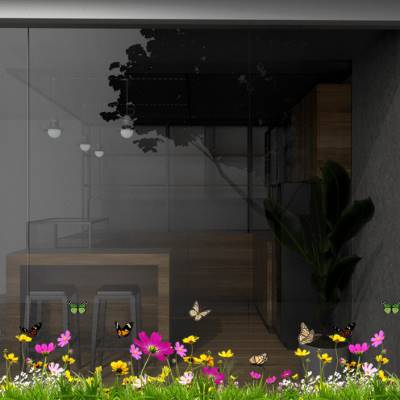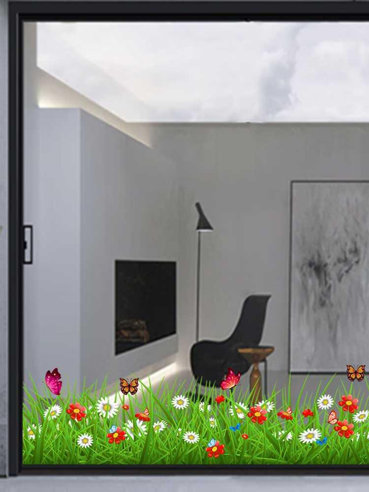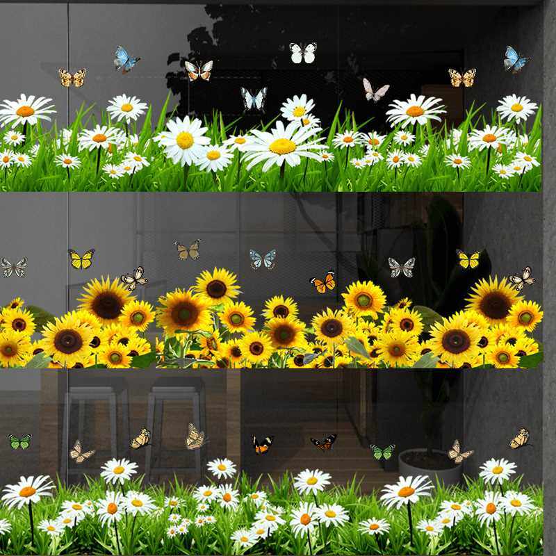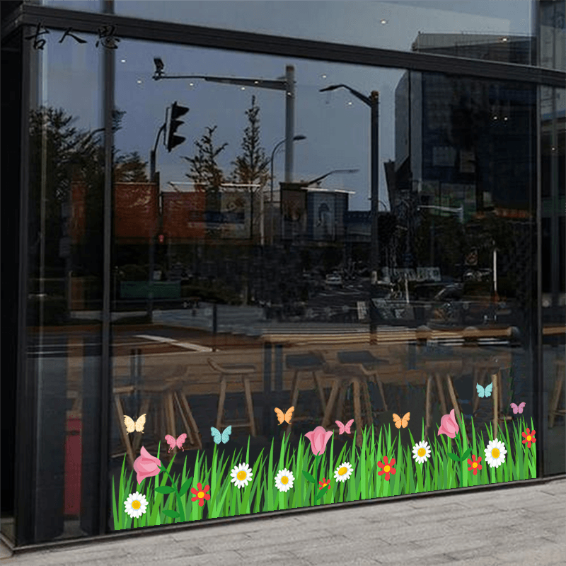 门店玻璃门橱窗墙角踢脚线静电无胶花草装饰创意自粘防水贴画墙贴