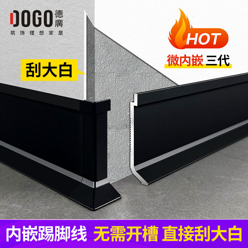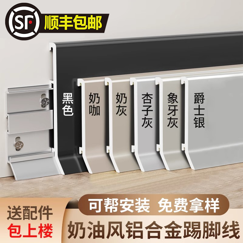 加厚铝合金踢脚线卡扣式金属地脚线家用黑色6cm8公分不锈钢贴脚线