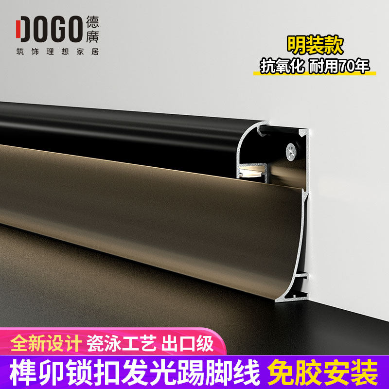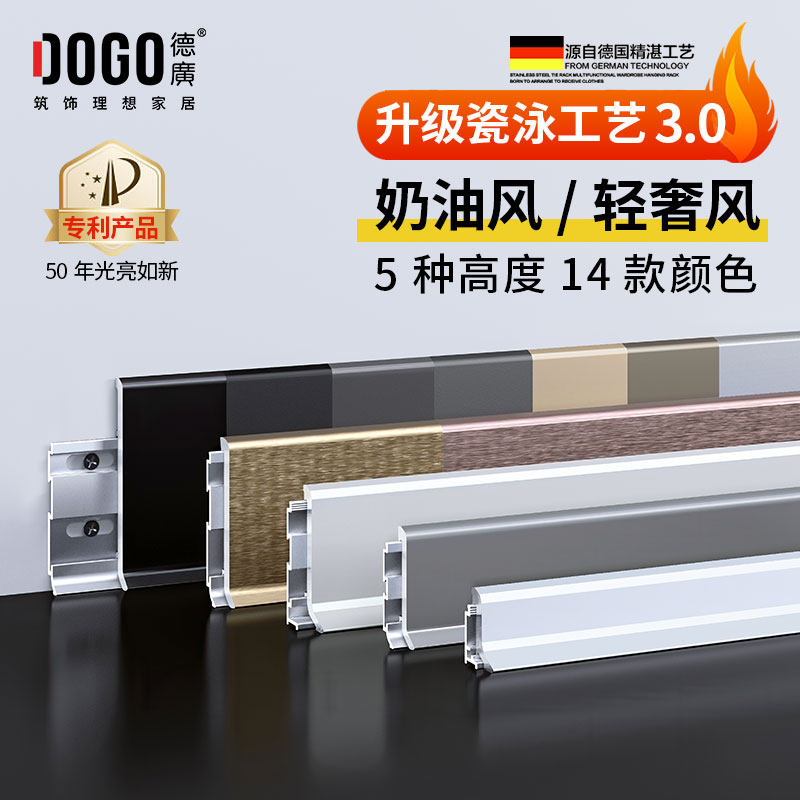 德广奶油风极简铝合金踢脚线双层卡扣金属地脚线64不锈钢定制圆弧