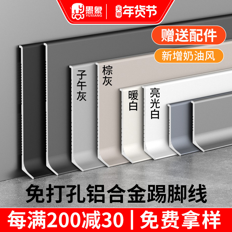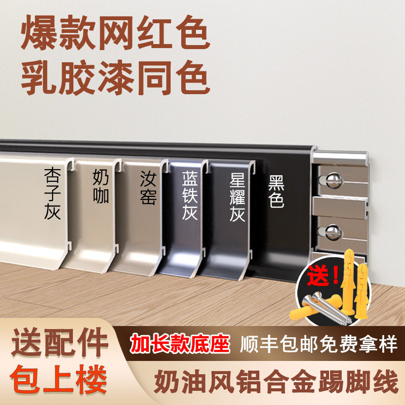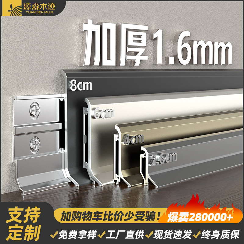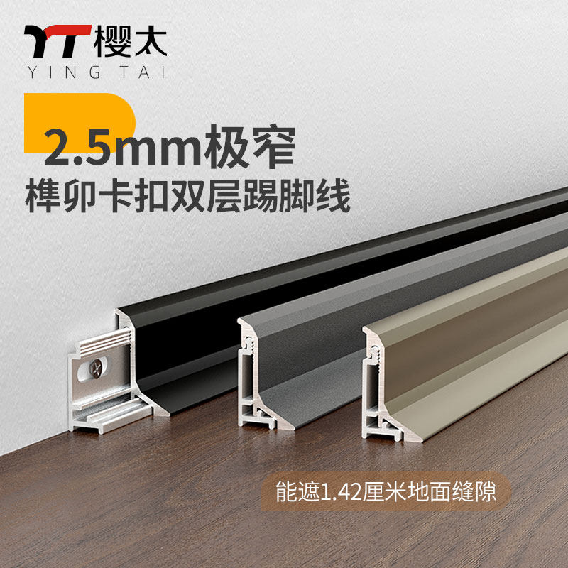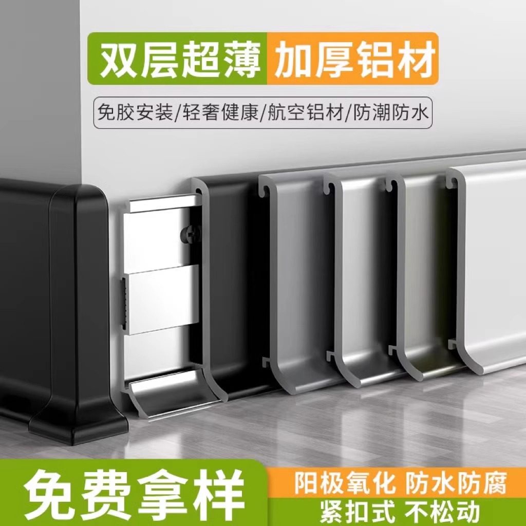 踢脚线铝合金双层卡扣式超薄墙贴4公分6cm8cm角线极窄金属地脚线