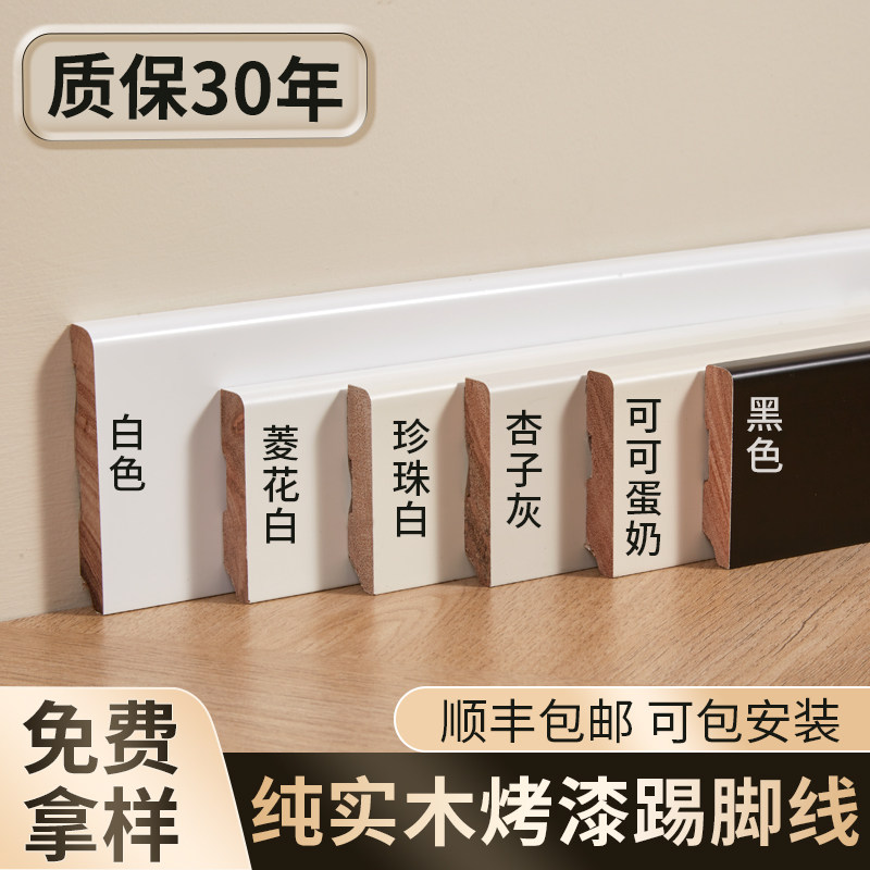 纯实木踢脚线番龙眼烤漆杏子灰可可蛋奶菱花白珍珠白色法式奶油风