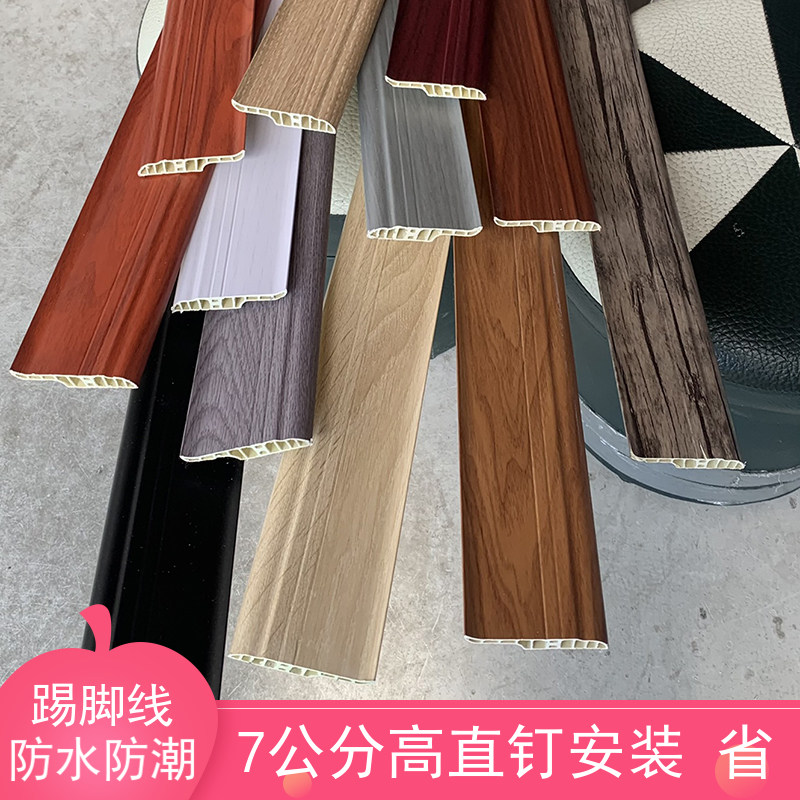 PVC踢脚线隐钉塑料地脚线加厚耐磨防水环保黑白灰墙角线木塑脚线