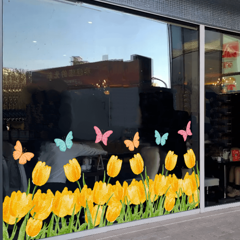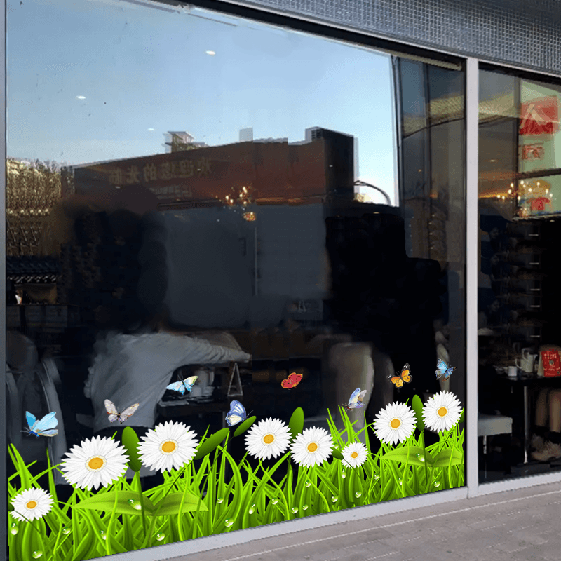 新品门店玻璃门橱窗墙p角踢脚线静电无胶花草装饰创意自粘防水贴