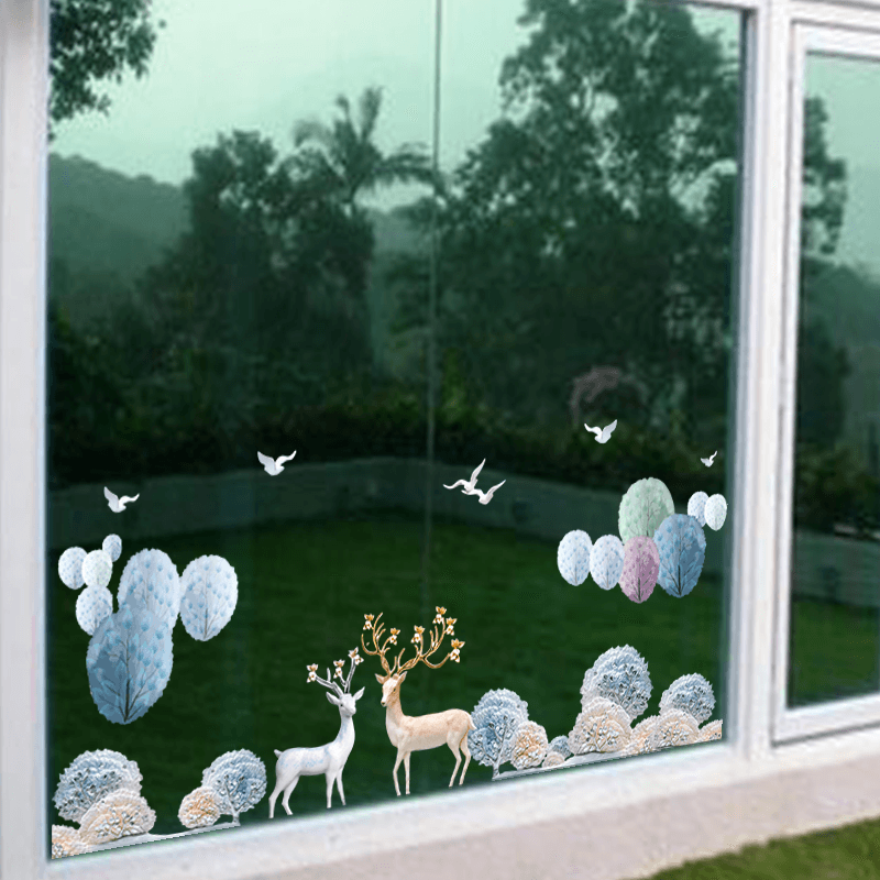 卡通创意麋鹿踢脚线玻璃贴商户便利店装饰墙贴画静电自粘防水贴纸