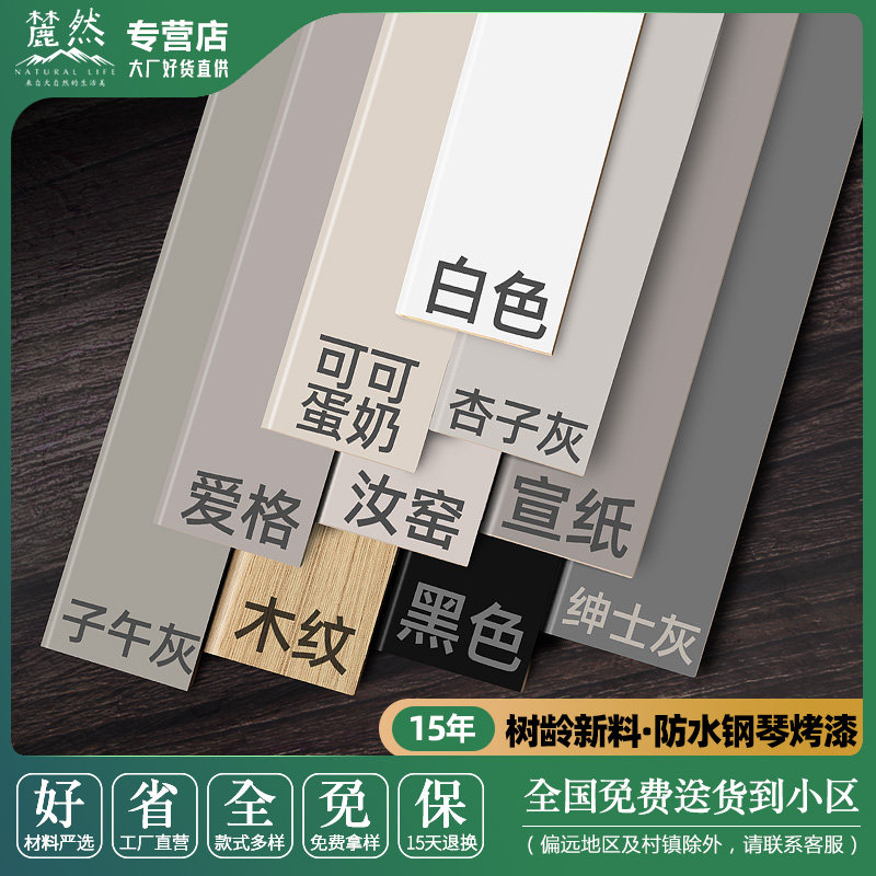 新款竹木纤维踢脚线实木地脚线白色木塑贴脚线10公分地角线6自装8